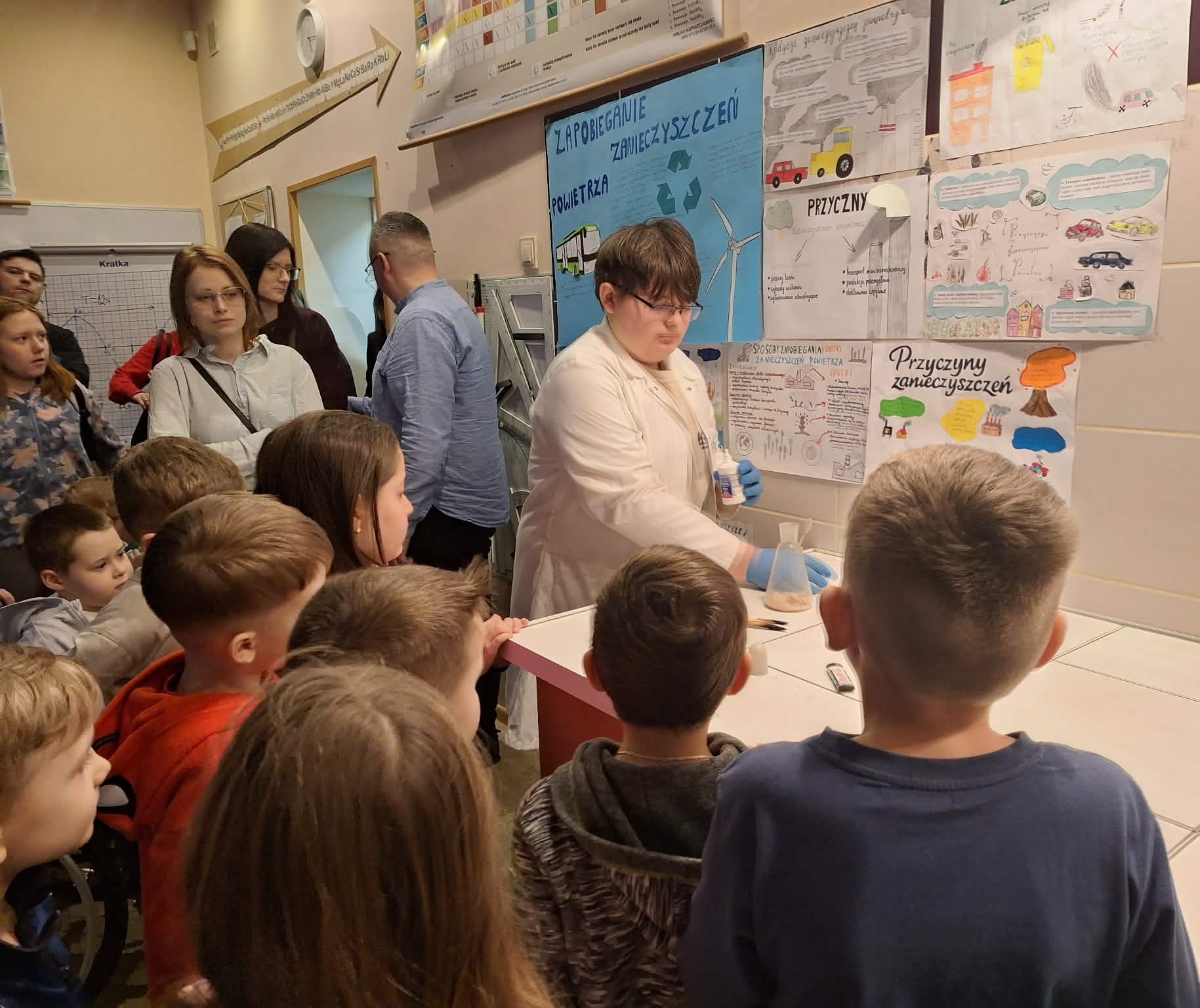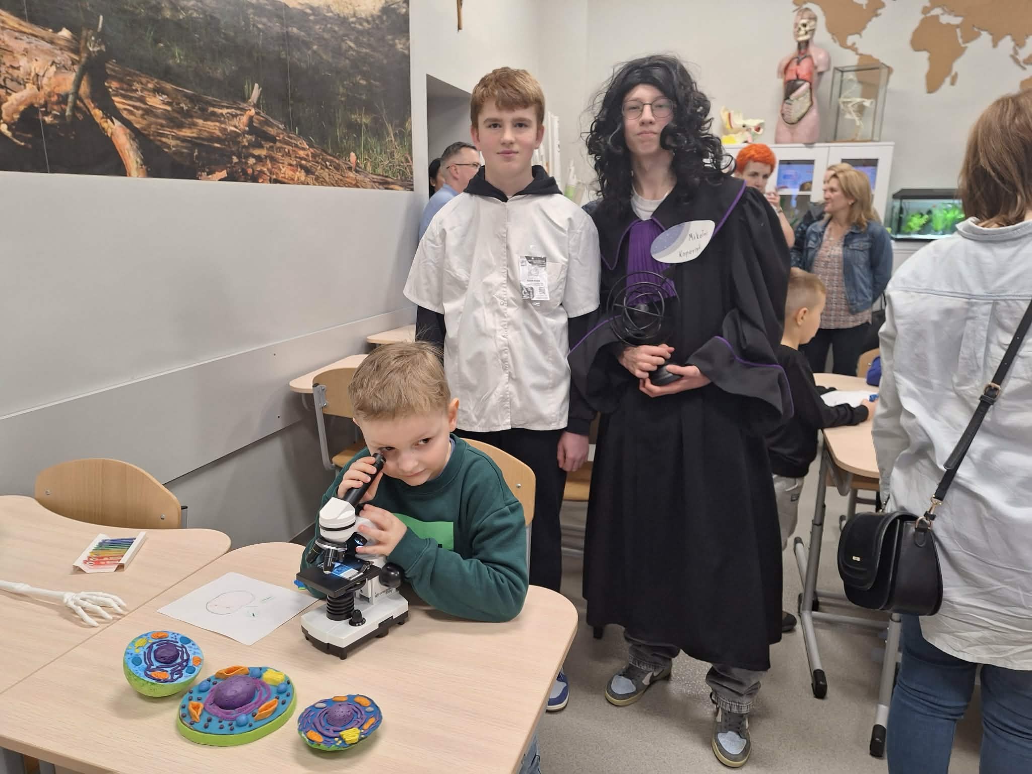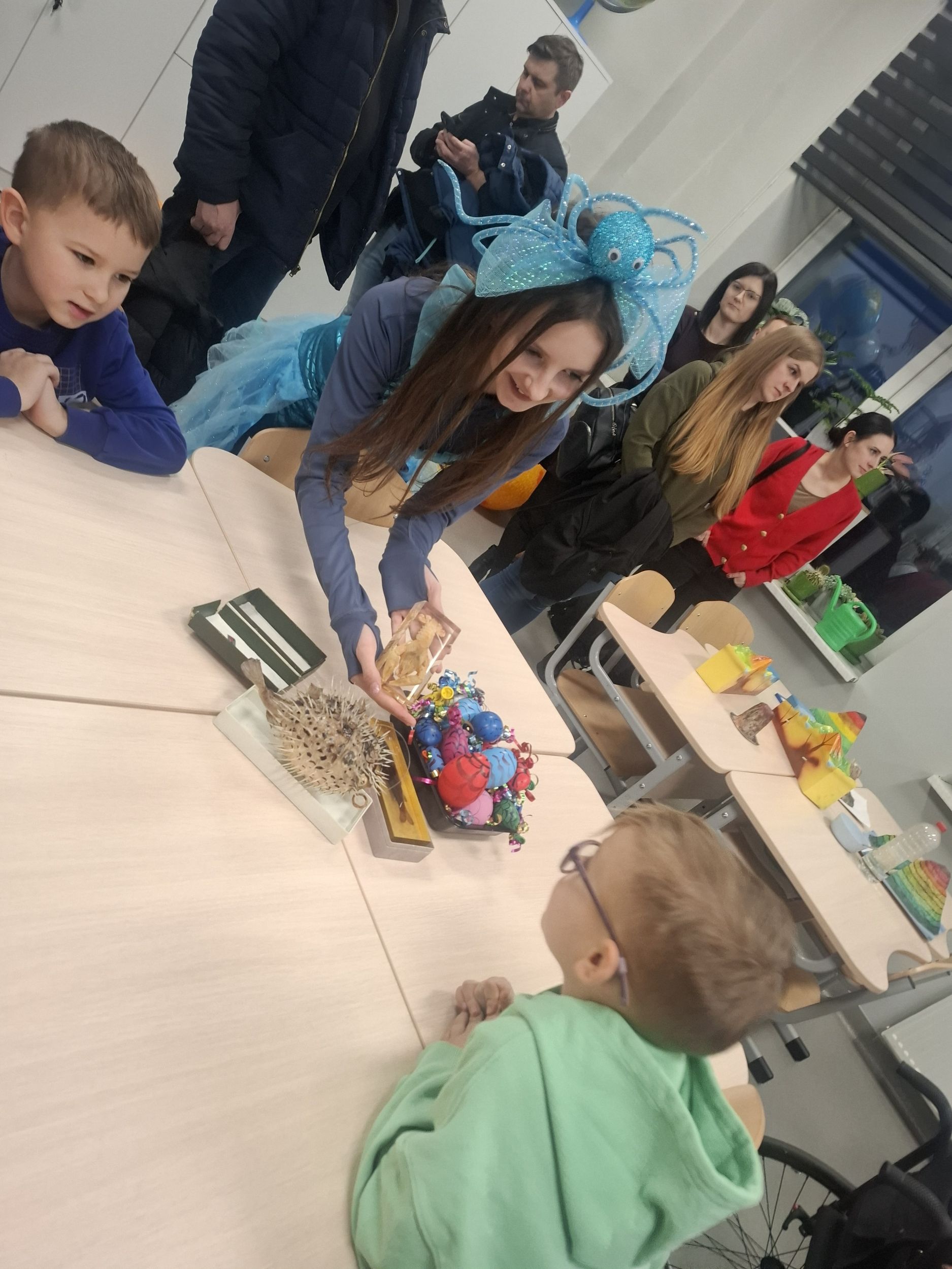Dzieci wraz z rodzicami obejrzały świetlicę, salę gimnastyczną, pracownię fizyczno- chemiczną, gdzie były świadkami niezwykłych doświadczeń zaprezentowanych przez uczniów klas ósmych. Następnie przeszły do pracowni informatycznej, a tam czekały na nich m.in. długopisy 3D oraz zabawa z ozobotami i photonami. Kolejnym punktem była pracownia przyrodnicza. Wspólnie z uczniami klas siódmych obserwowali obecne tam zwierzęta, przeprowadzali wybuch wulkanu i wykonali rybkę rozdymkę. Pokaz tańca w wykonaniu dziewczynek z klas piątych i szóstych zachęcił dzieci do wspólnej aktywności fizycznej. Chwilą wytchnienia po zabawie były zajęcia plastyczne w bibliotece. Ostatnim etapem zwiedzania szkoły stała się sala lekcyjna przyszłej klasy pierwszej i muzyczny występ trzecioklasistów. Odpoczynek przy słodkim poczęstunku i rozmowy z nauczycielami zakończyły pierwsze wspólne spotkanie w Szkole Podstawowej nr 6.