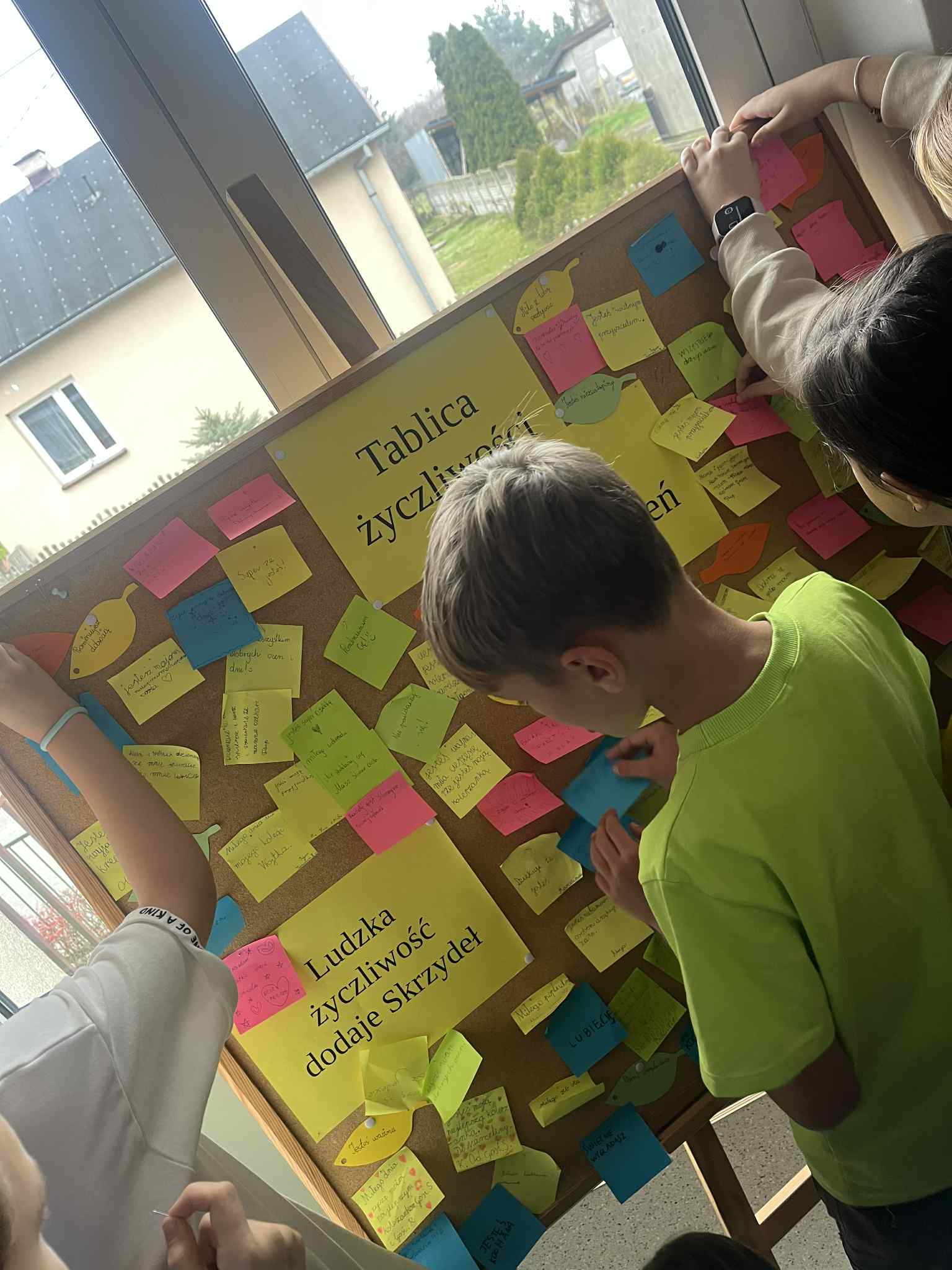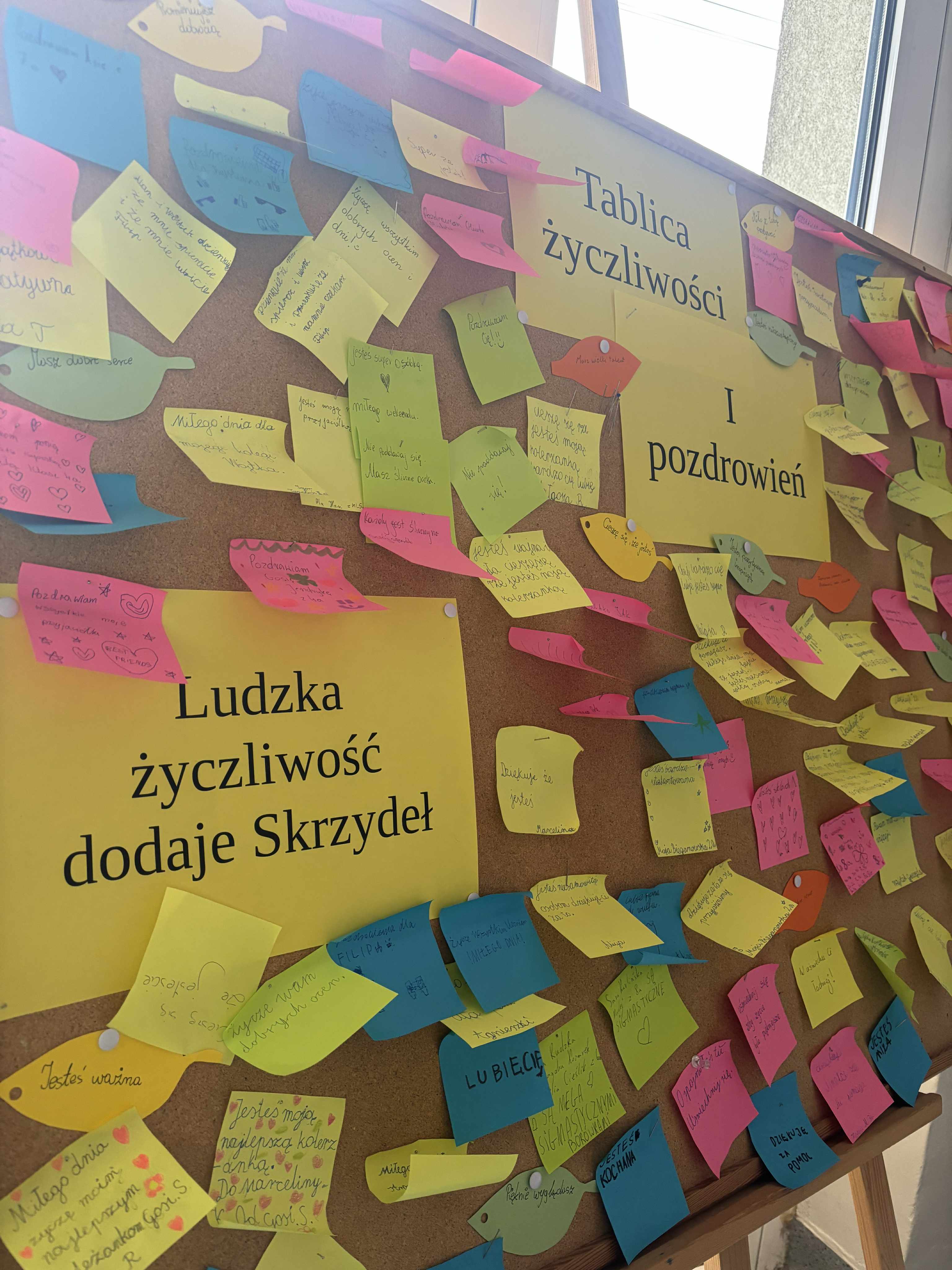 Z okazji Dnia Życzliwości i Pozdrowień Szkolny Klub Wolontariatu zorganizował 21 listopada akcję promującą miłe słowa i wzajemne wsparcie. W holu szkoły stanęła „Tablica Życzliwości i Pozdrowień”, na której uczniowie mogli umieszczać kolorowe karteczki z życzeniami, pozdrowieniami i dobrymi myślami.