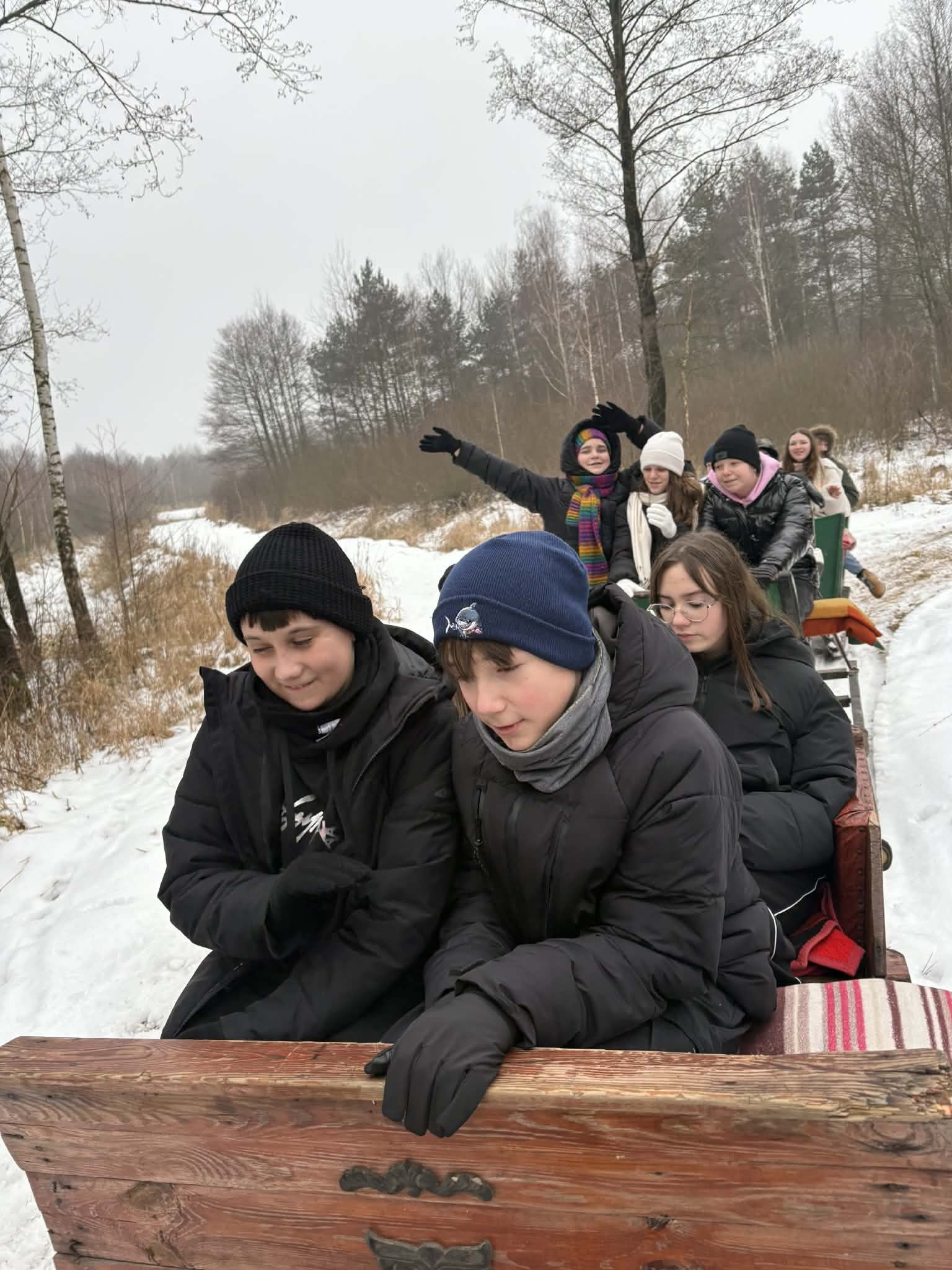 Zima wreszcie przyszła i korzystamy z niej, ile się da. W piątek 16 stycznia klasa VIIb postanowiła zorganizować kulig. Konie parskały, dzwoneczki dźwięczały, a sanna sunęła przez leśne zasypane drogi jak w bajce.