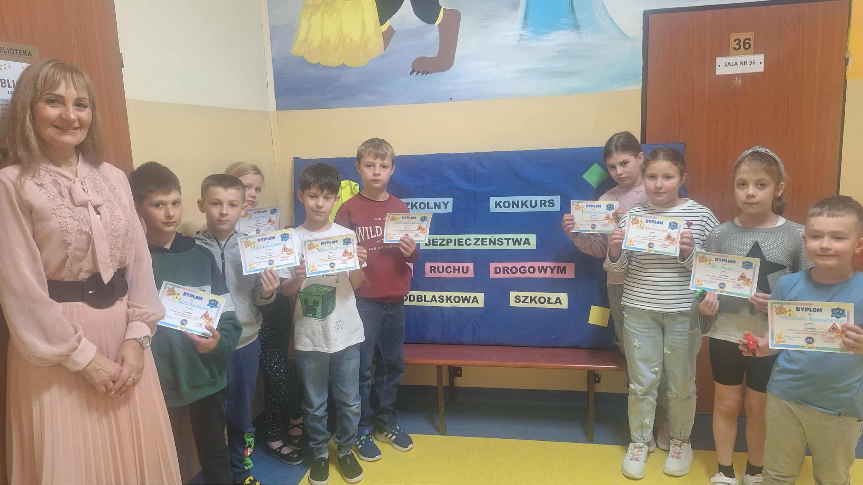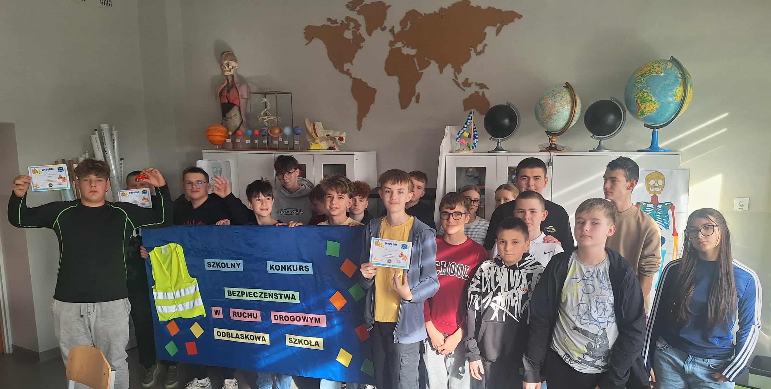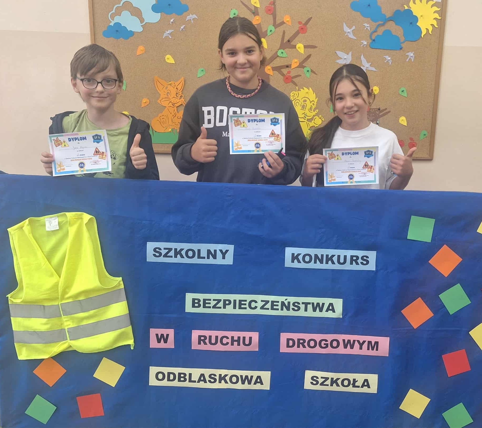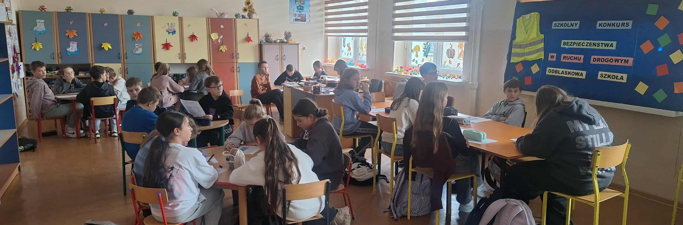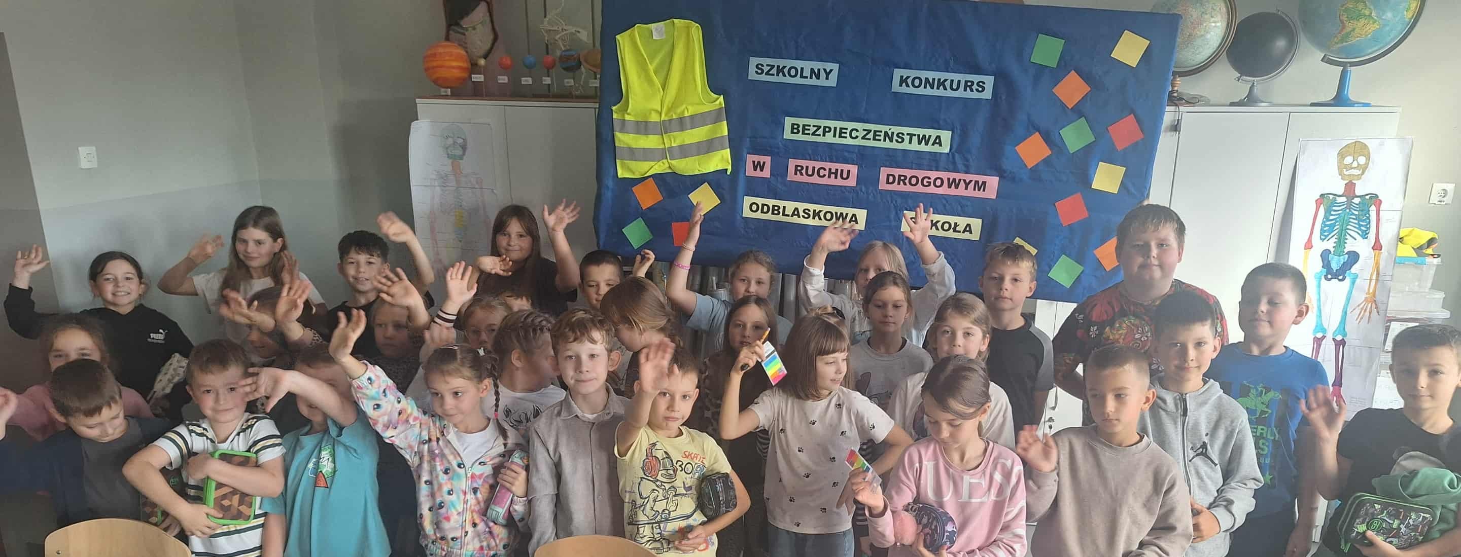 Dobiegł końca Ogólnoszkolny Konkurs Bezpieczeństwa w Ruchu Drogowym organizowany w ramach akcji " Odblaskowa szkoła". Wzięła w nim udział bardzo duża liczba chętnych uczniów, co pokazuje, jak ważny i interesujący jest temat bezpieczeństwa na drodze. Poziom był bardzo wysoki i niezwykle wyrównany, dlatego rywalizacja była pełna emocji aż do ostatnich chwil. W każdej grupie wiekowej – klasy 1–3, 4–6 oraz 7–8 konieczne były dodatkowe dogrywki, aby wyłonić najlepszych, dlatego też konkurs miał charakter wieloetapowy.