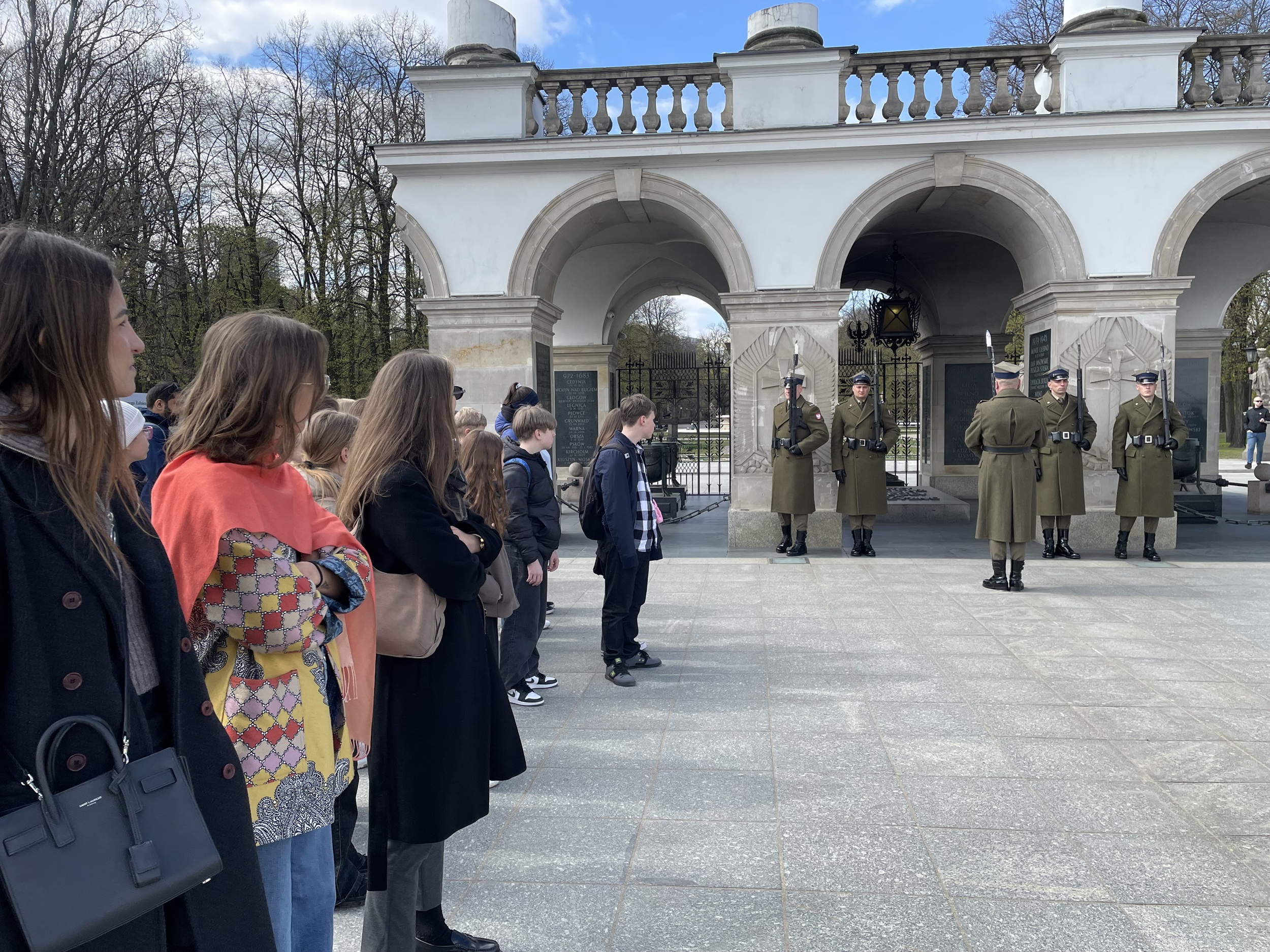 Kolejnym ważnym miejscem był Grób Nieznanego Żołnierza, przy którym uczniowie mieli okazję zobaczyć uroczystą zmianę warty. Zwiedzili także Plac Piłsudskiego, a następnie udali się na Plac Zamkowy i warszawską Starówkę, gdzie podziwiali zabytkową architekturę oraz wyjątkową atmosferę tego miejsca.