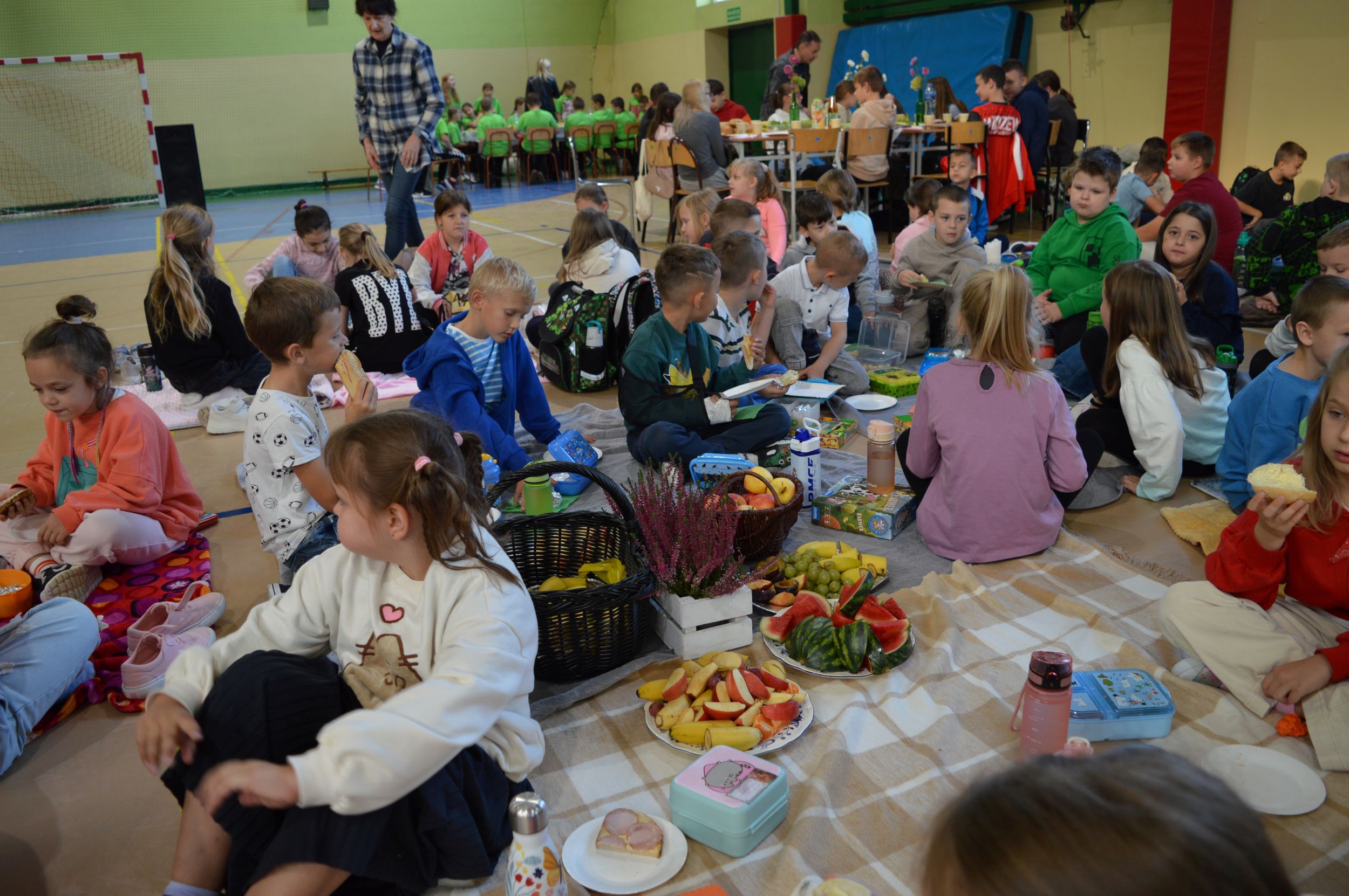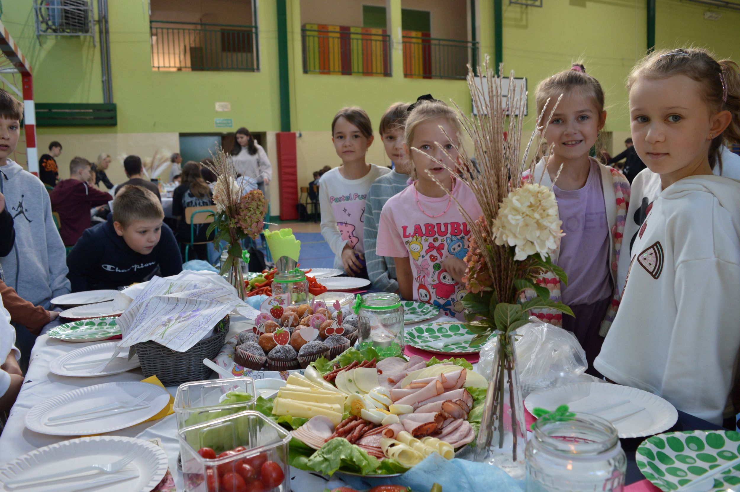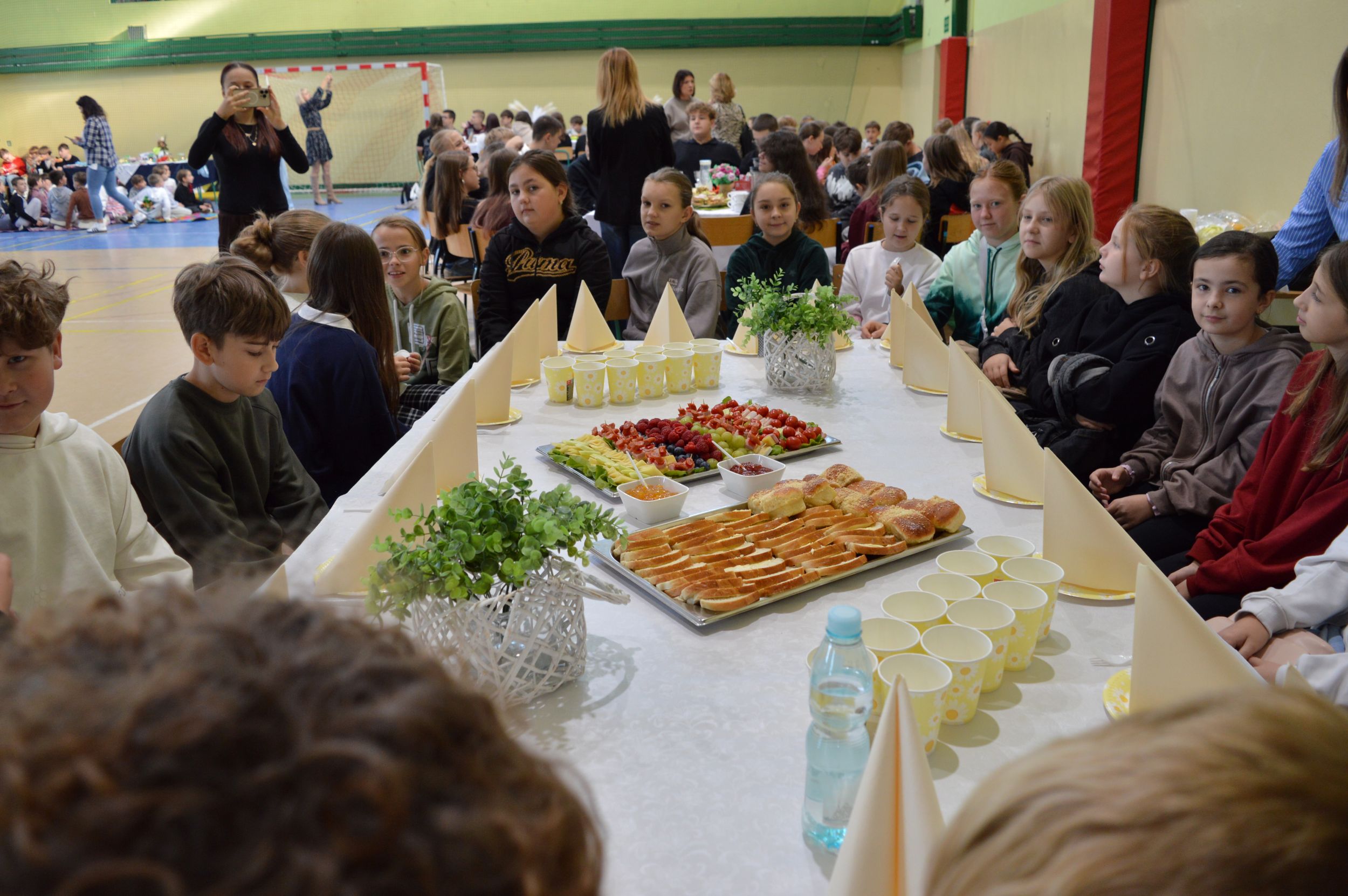 Środa była wyjątkowym dniem dla całej społeczności szkolnej i przebiegała pod hasłem „ Dzień wspólnego śniadania”. Każda klasa przyszykowała stół śniadaniowy, a następnie odbyło się wspólne spożywanie posiłku. Uczniowie oraz rodzice bardzo mocno zaangażowali się w przygotowanie stołów śniadaniowych- dominowały zdrowe, pełnowartościowe produkty i dania. Śniadanie wzbogacone zostało wspólną rozmową, która miała na celu uświadomienie dzieciom, jakich produktów należy unikać oraz jak ważne jest spożywanie rano zdrowego posiłku. Następnie uczniowie mogli spalić zjedzone kalorie podczas zabaw ruchowych przy muzyce.