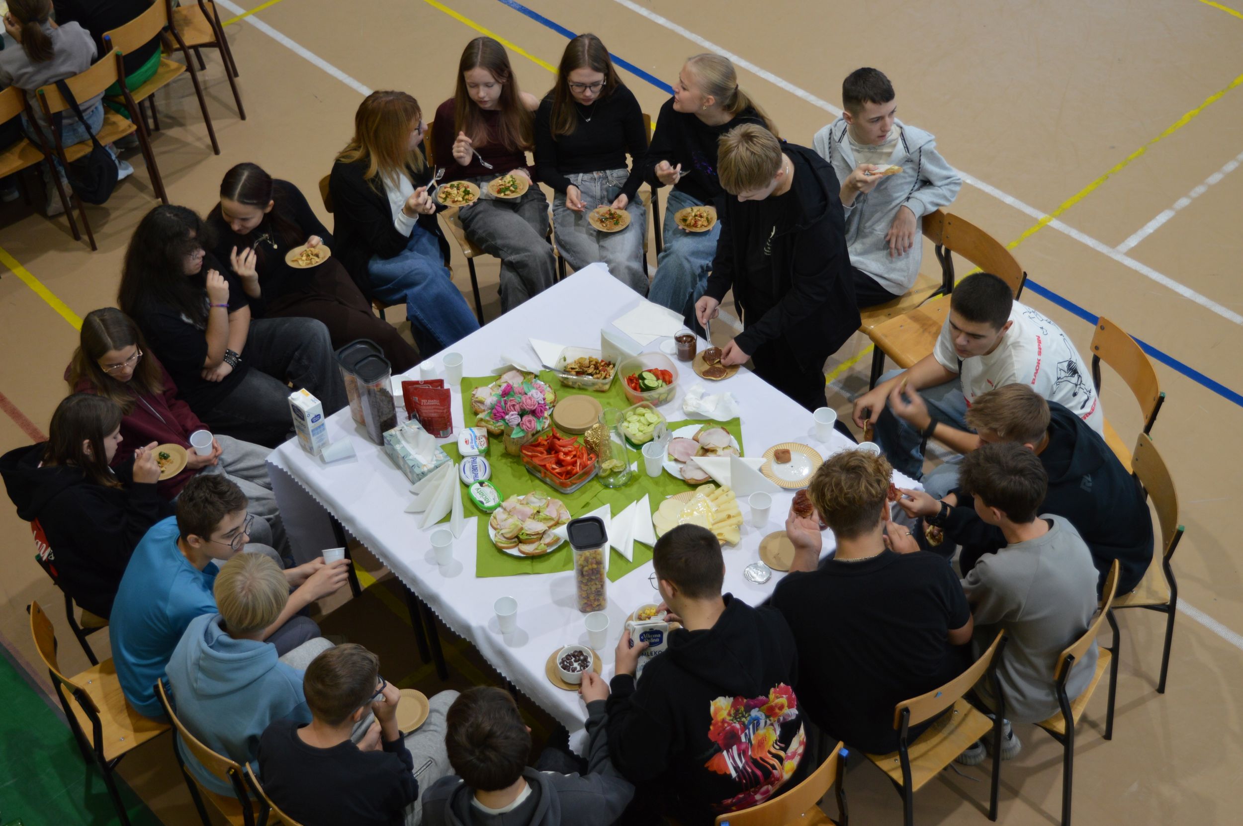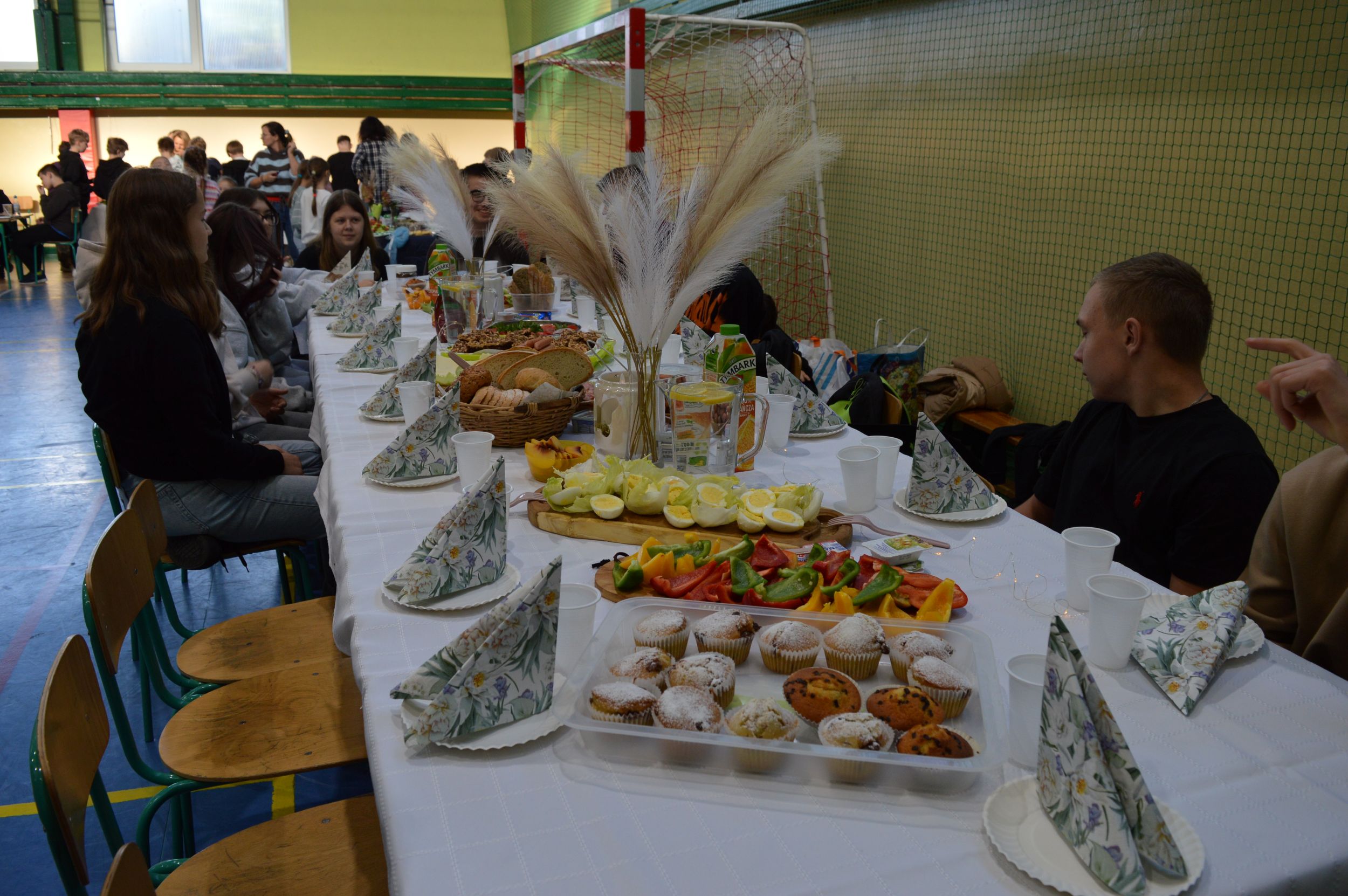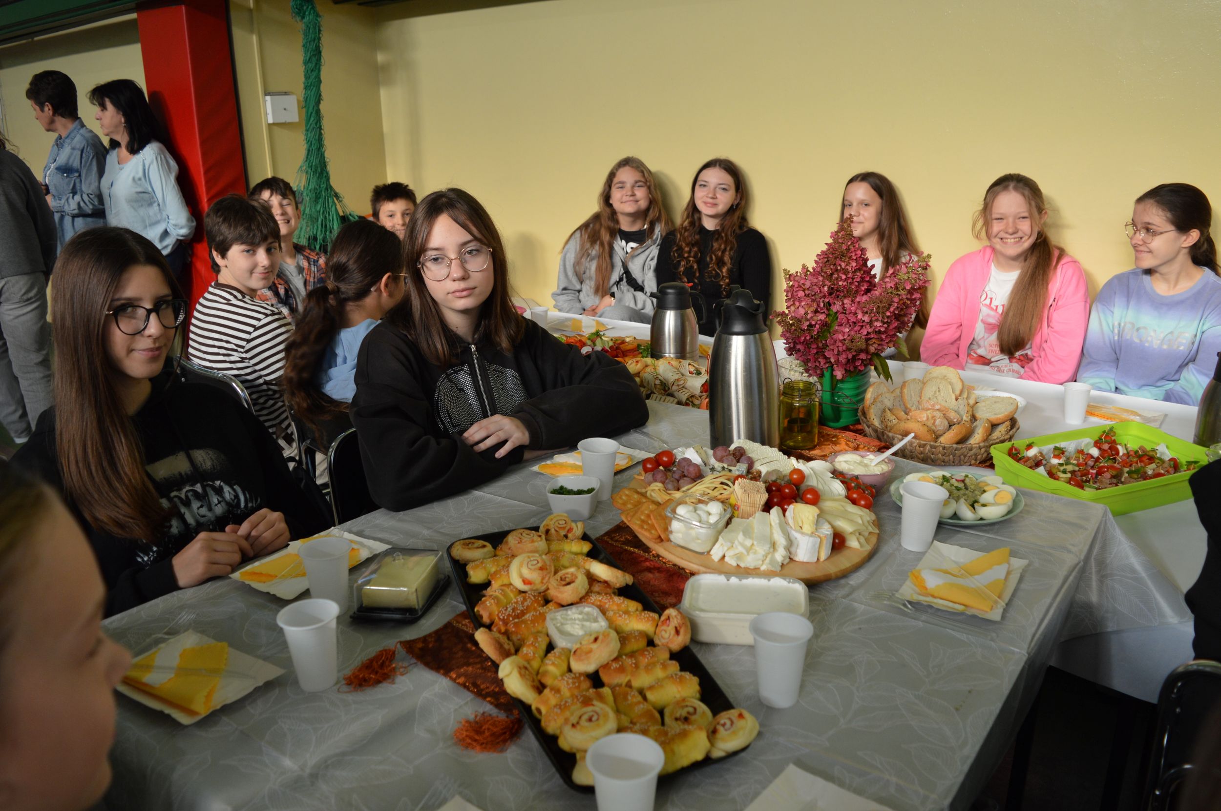 Środa była wyjątkowym dniem dla całej społeczności szkolnej i przebiegała pod hasłem „ Dzień wspólnego śniadania”. Każda klasa przyszykowała stół śniadaniowy, a następnie odbyło się wspólne spożywanie posiłku. Uczniowie oraz rodzice bardzo mocno zaangażowali się w przygotowanie stołów śniadaniowych- dominowały zdrowe, pełnowartościowe produkty i dania. Śniadanie wzbogacone zostało wspólną rozmową, która miała na celu uświadomienie dzieciom, jakich produktów należy unikać oraz jak ważne jest spożywanie rano zdrowego posiłku. Następnie uczniowie mogli spalić zjedzone kalorie podczas zabaw ruchowych przy muzyce.