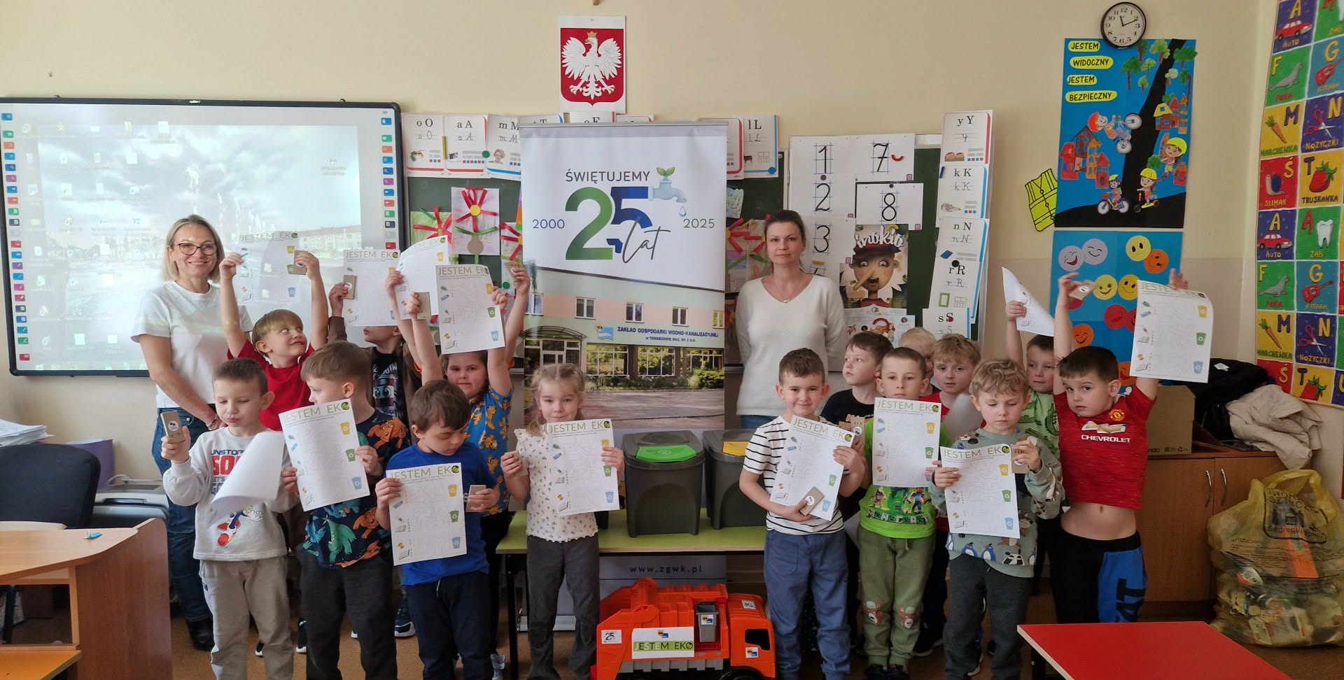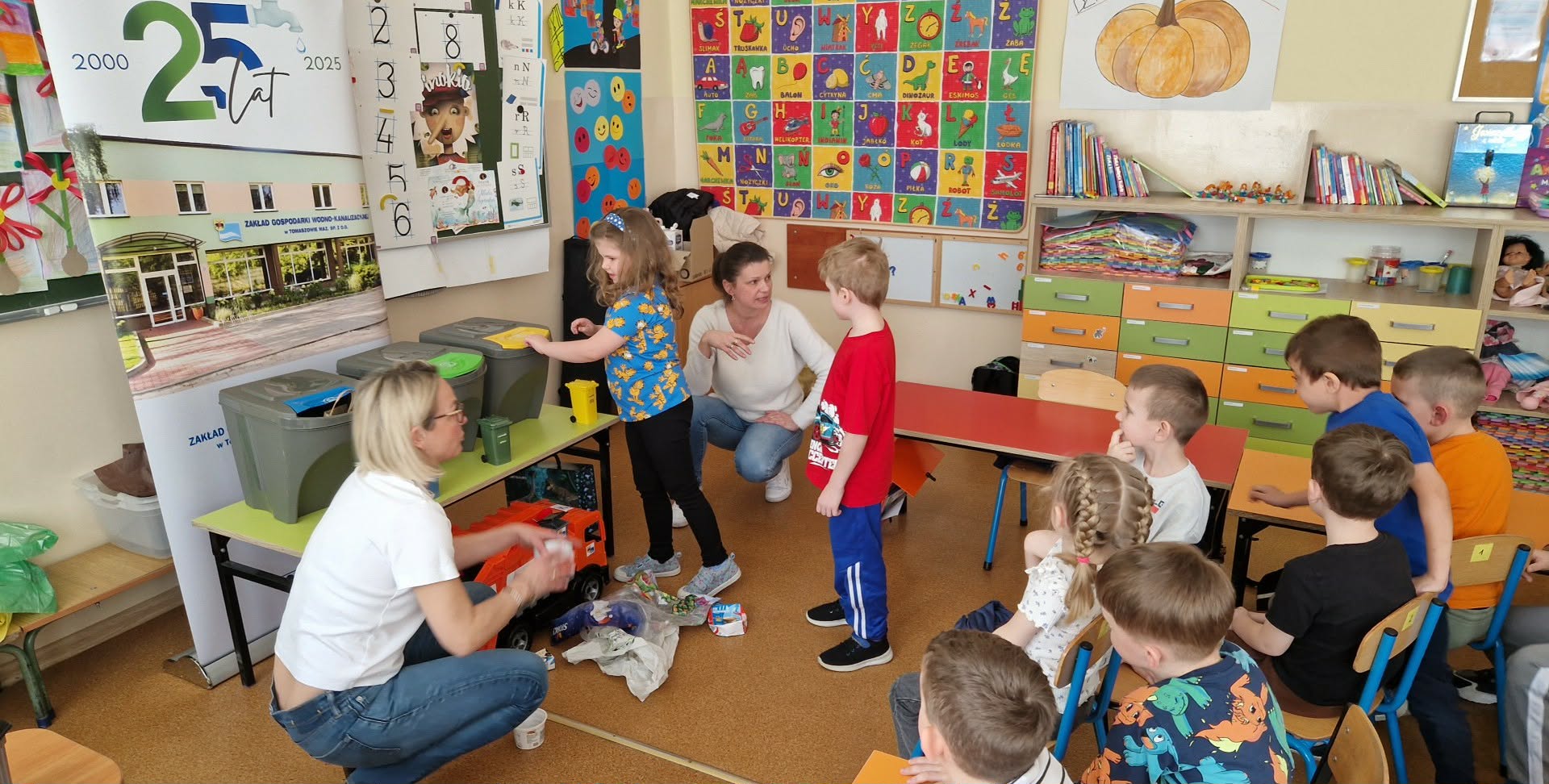 Zajęcia edukacyjne dotyczące ochrony środowiska i zasad prawidłowej segregacji odpadów poprowadziły 17 marca dla grupy przedszkolnej "0" Panie z Punktu Selektywnego Składowania Odpadków Komunalnych. Dzieci poznały rodzaje odpadów, uczyły się ich właściwego sortowania oraz dowiedziały się, jak można ponownie wykorzystać różne przedmioty.